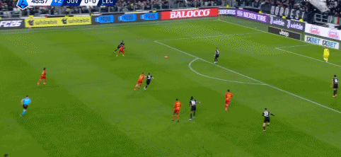 第45+1分钟,反客为主,尤文后场失误,班达调整兜射破门,莱切1-0