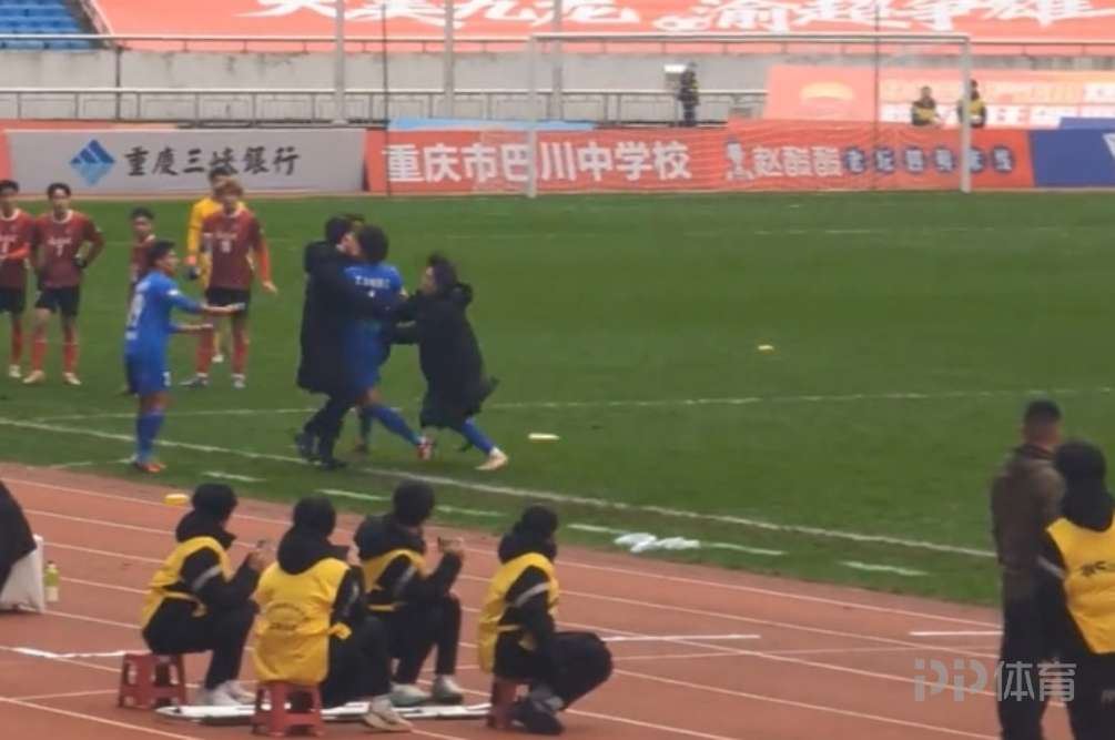 在昨天进行的渝超联赛九龙坡vs大渡口的比赛中,出现了球员追打裁判的不友好一幕。比赛伤停补时阶段,0-1落后的大渡口队打入绝平进球,但被主裁判吹掉,认定皮球先出了底线。大渡口球员对判罚非常不满,纷纷找主裁判要个说法,一度上升到肢体冲突,主裁判则在众多安保的保护下退场。