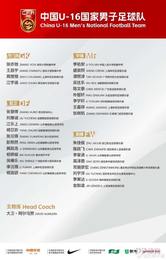 U16国足公布最新一期集训名单,朴智轩、李佑安在列,U16国足将于2026年1月12日至2月8日在福建省漳州市组织集训,以备战2027年U17亚洲杯。
