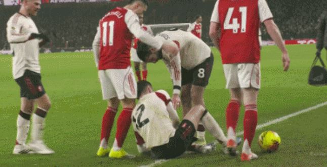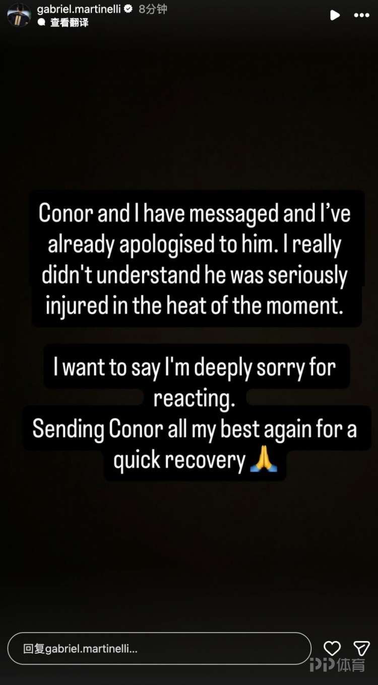 英超第21轮,阿森纳主场0比0战平利物浦。比赛中,布拉德利无对抗下倒地,随后马丁内利用球砸向他,并试图将其推出场外,这一行为引发双方冲突。赛后马丁内利通过社交媒体发文致歉,表示自己当时并没有意识到布拉德利受到重伤,并祝愿其早日康复。