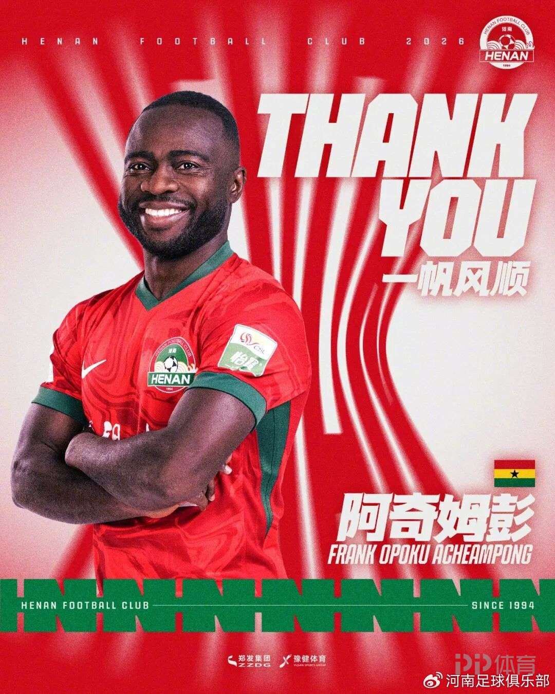 河南队发布官方公告,阿奇姆彭、卡多索、尹鸿博、黄紫昌等10名球员合同到期离队。公告如下: