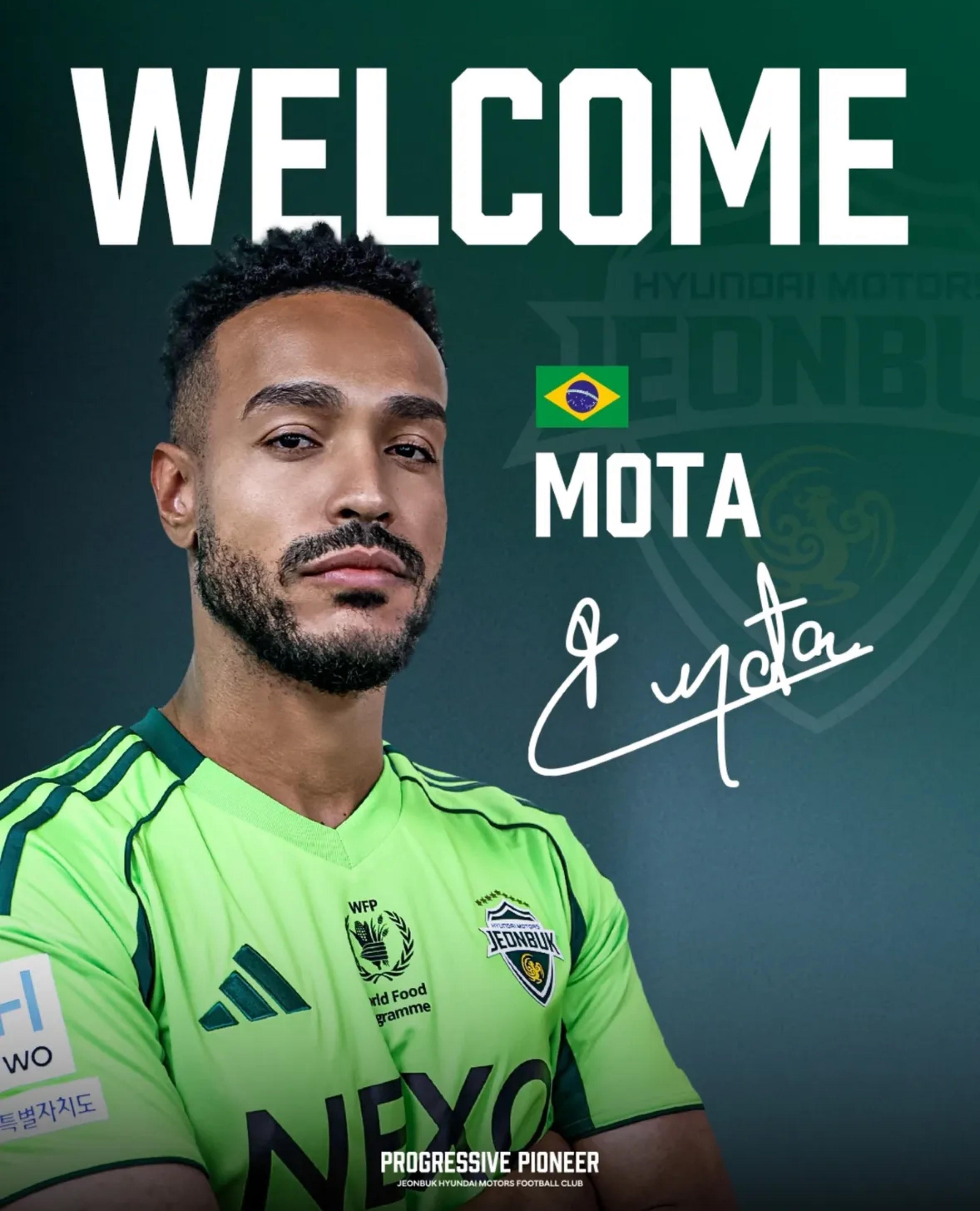 北京时间1月9日,全北现代官方宣布,巴西前锋布鲁诺-莫塔加盟俱乐部。球员曾与上海申花传出绯闻。