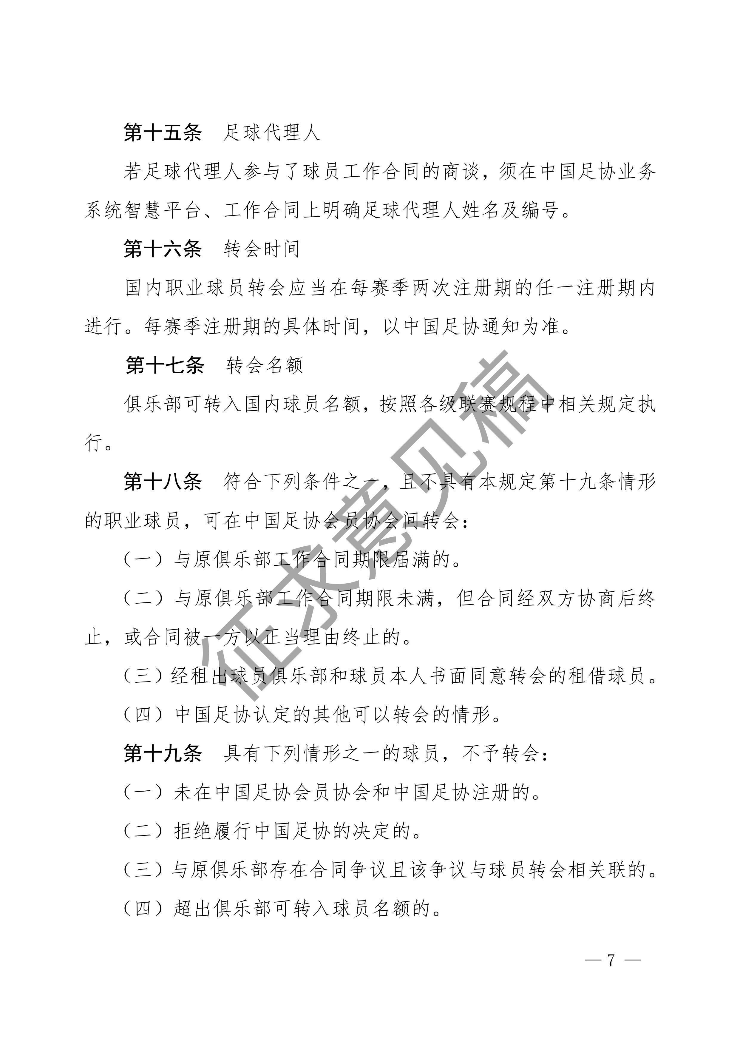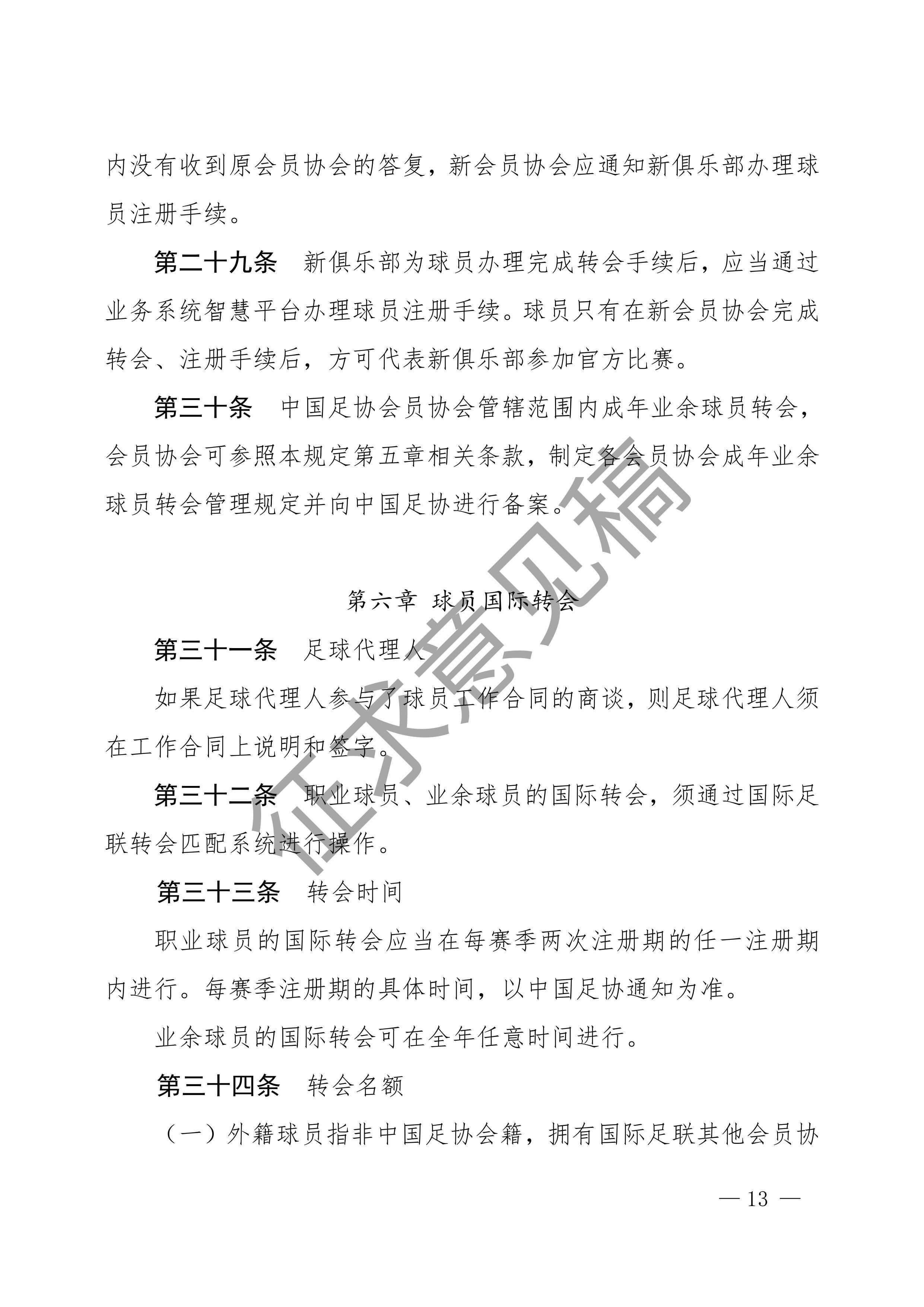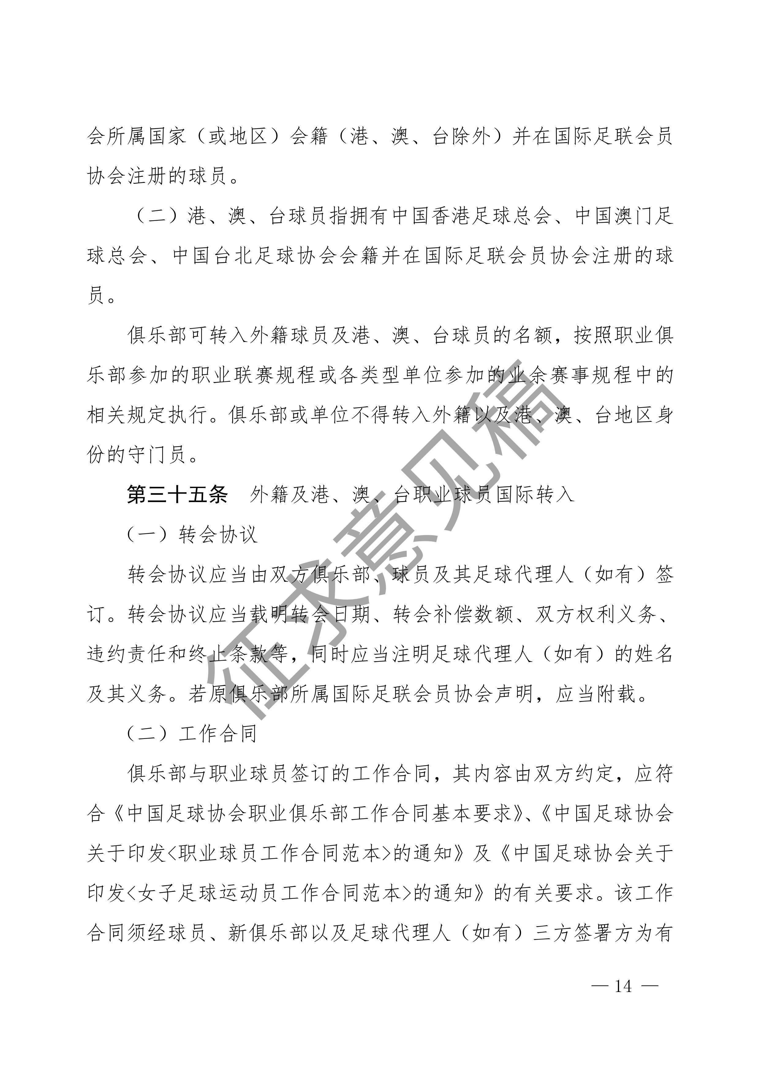 中国足球协会球员身份与转会管理规定征求意见稿