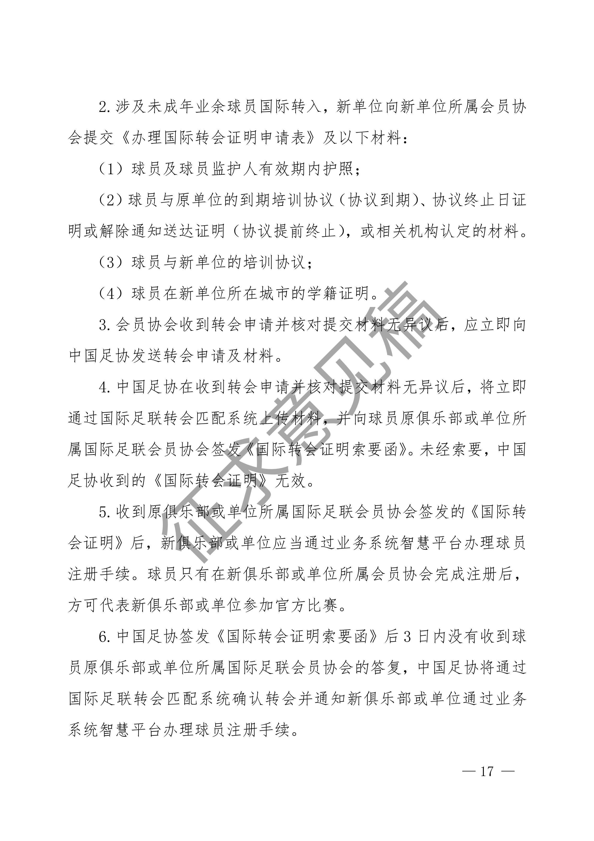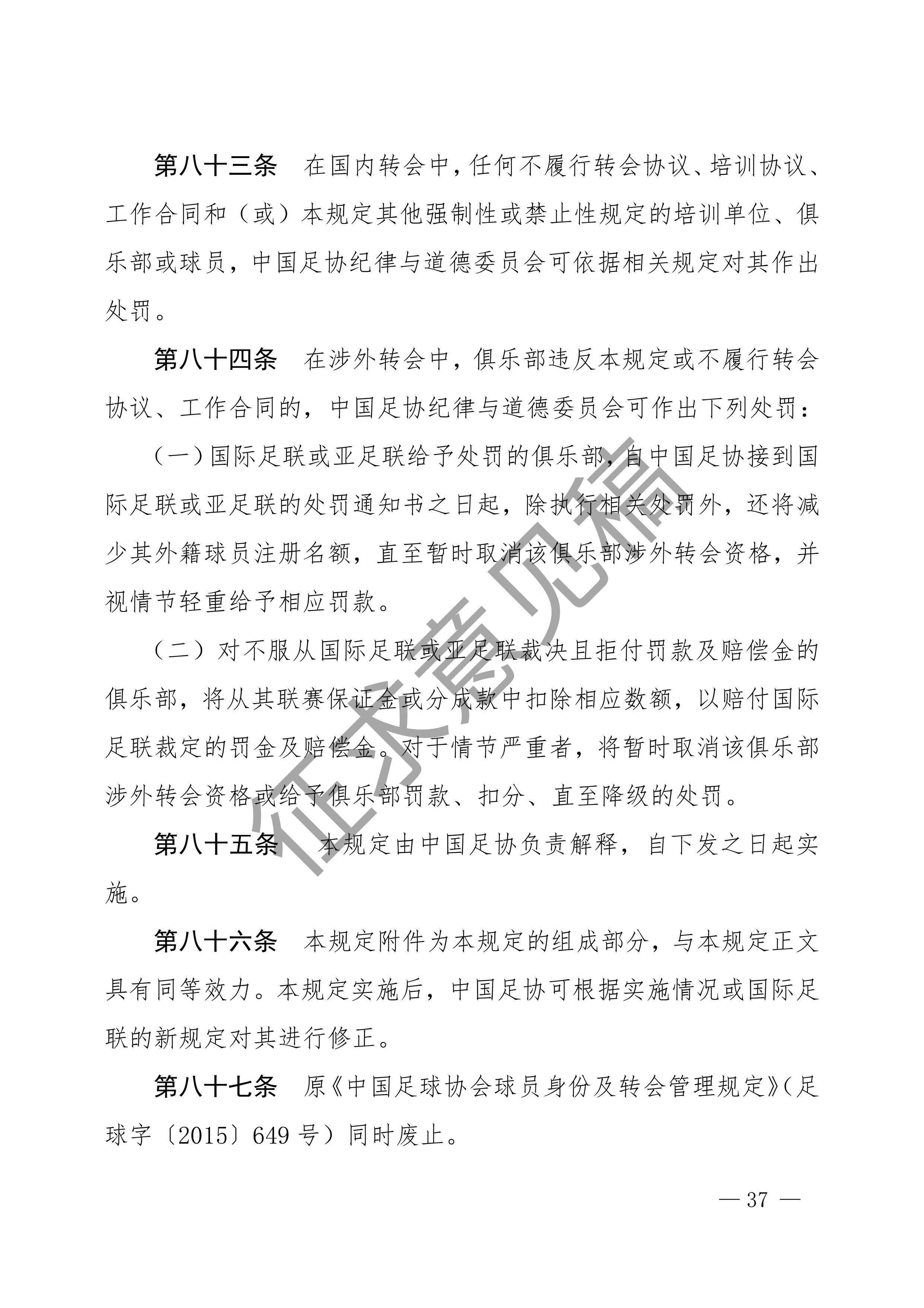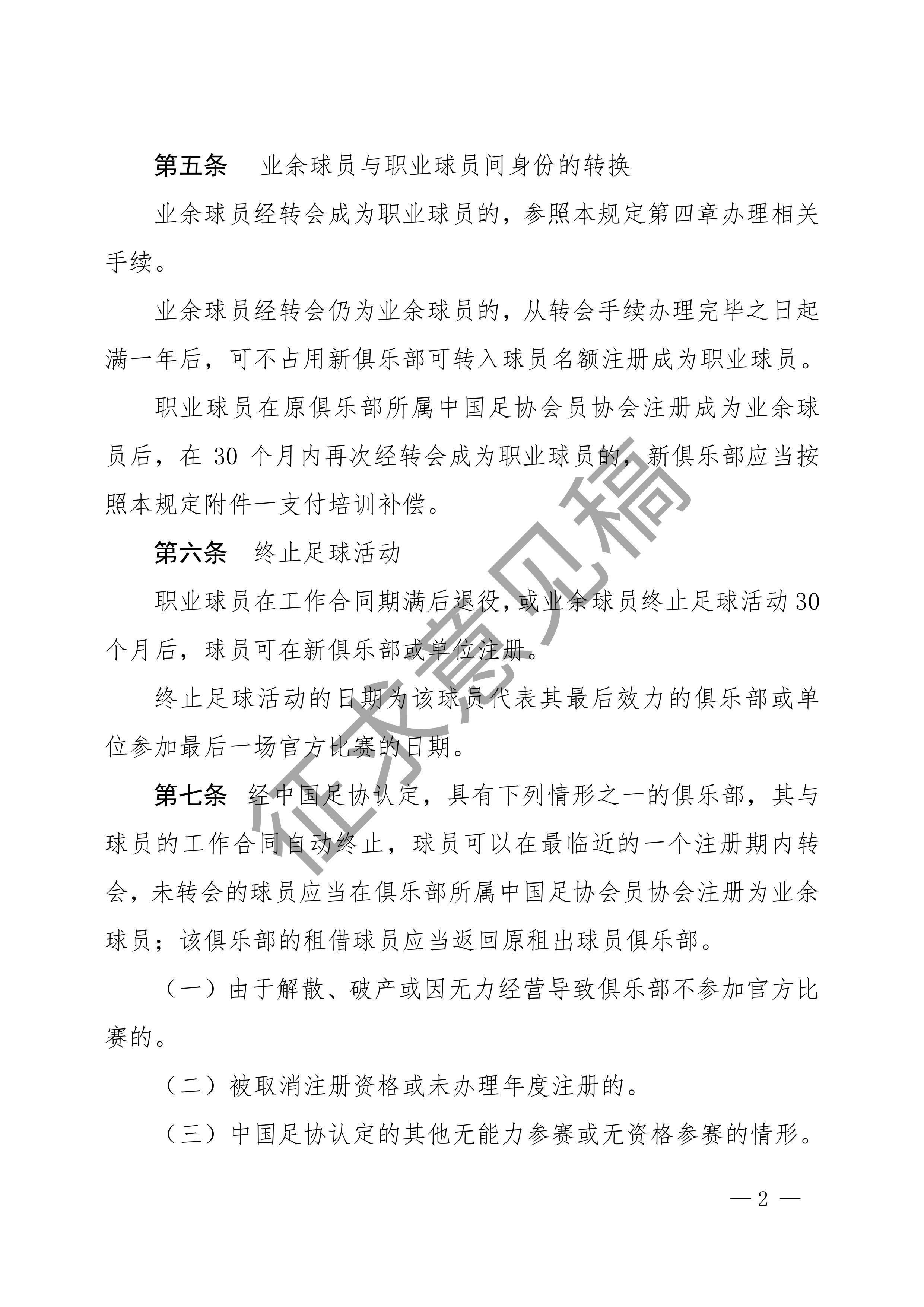 中国足球协会球员身份与转会管理规定征求意见稿