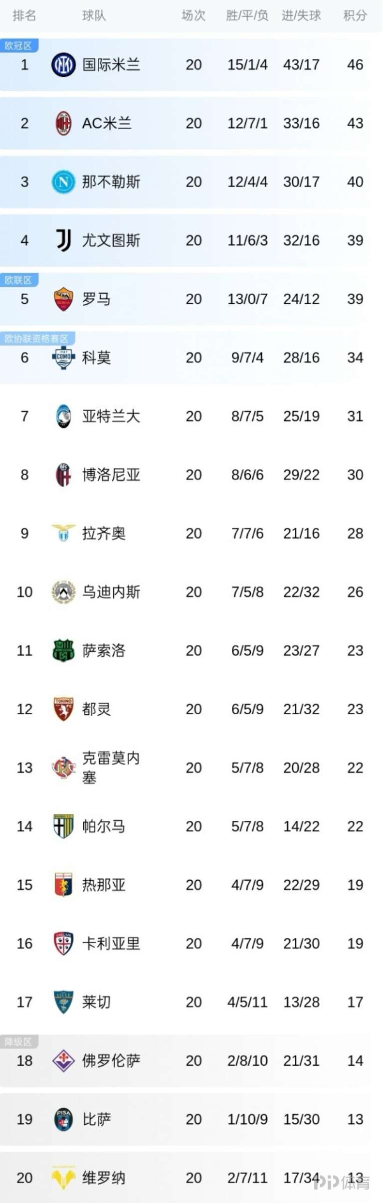 意甲第16轮补赛,AC米兰3-1逆转战胜科莫。米兰联赛19轮不败,以43分排名第二,落后国米3分,领先那不勒斯3分。