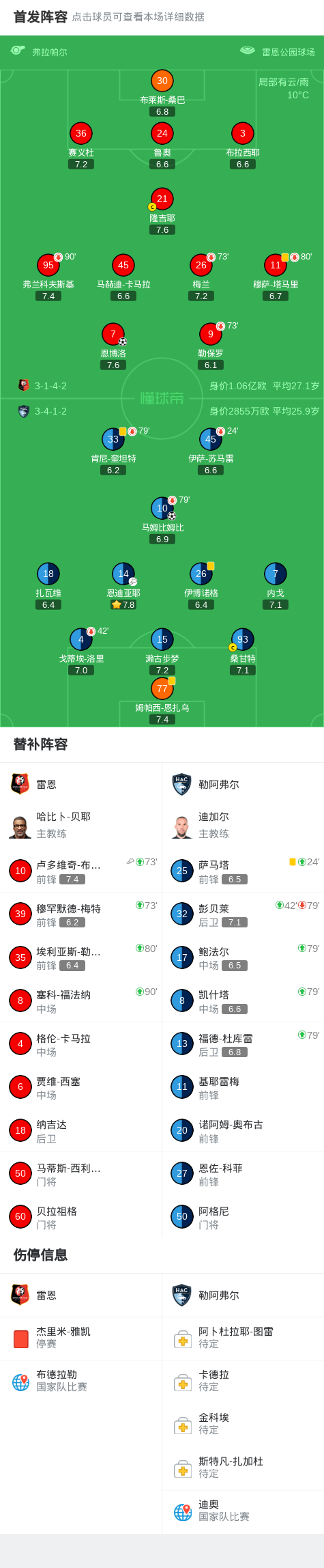 北京时间1月19日法国足球顶级联赛 联赛 第18轮,雷恩主场对阵勒阿弗尔。雷恩恩博洛破门。勒阿弗尔马姆比姆比破门。最终比分雷恩 1-1 勒阿弗尔。