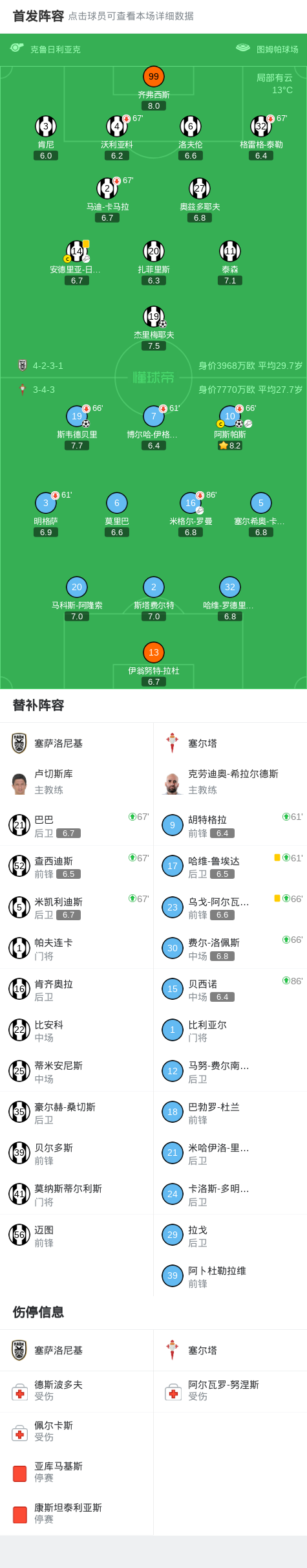 北京时间2月20日欧足联欧洲联赛 淘汰赛附加赛首回合,塞萨洛尼基对阵塞尔塔。塞萨洛尼基杰里梅耶夫破门。塞尔塔阿斯帕斯破门,斯韦德贝里破门。最终比分塞萨洛尼基 1-2 塞尔塔。
