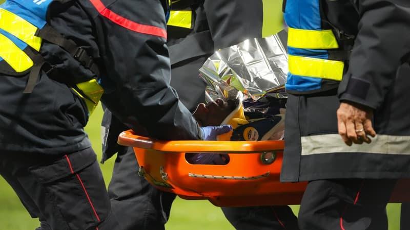 据悉,比赛临近结束时,西迪贝在一次头球争抢中受伤,随后被担架抬离场地。在场边医疗团队的治疗下,他长时间躺在地上,最终戴着护颈被固定后抬出场。