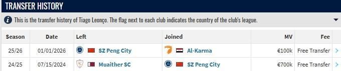 德转显示,原深圳新鹏城外援德-列昂索自由身加盟伊拉克俱乐部卡尔马体育。